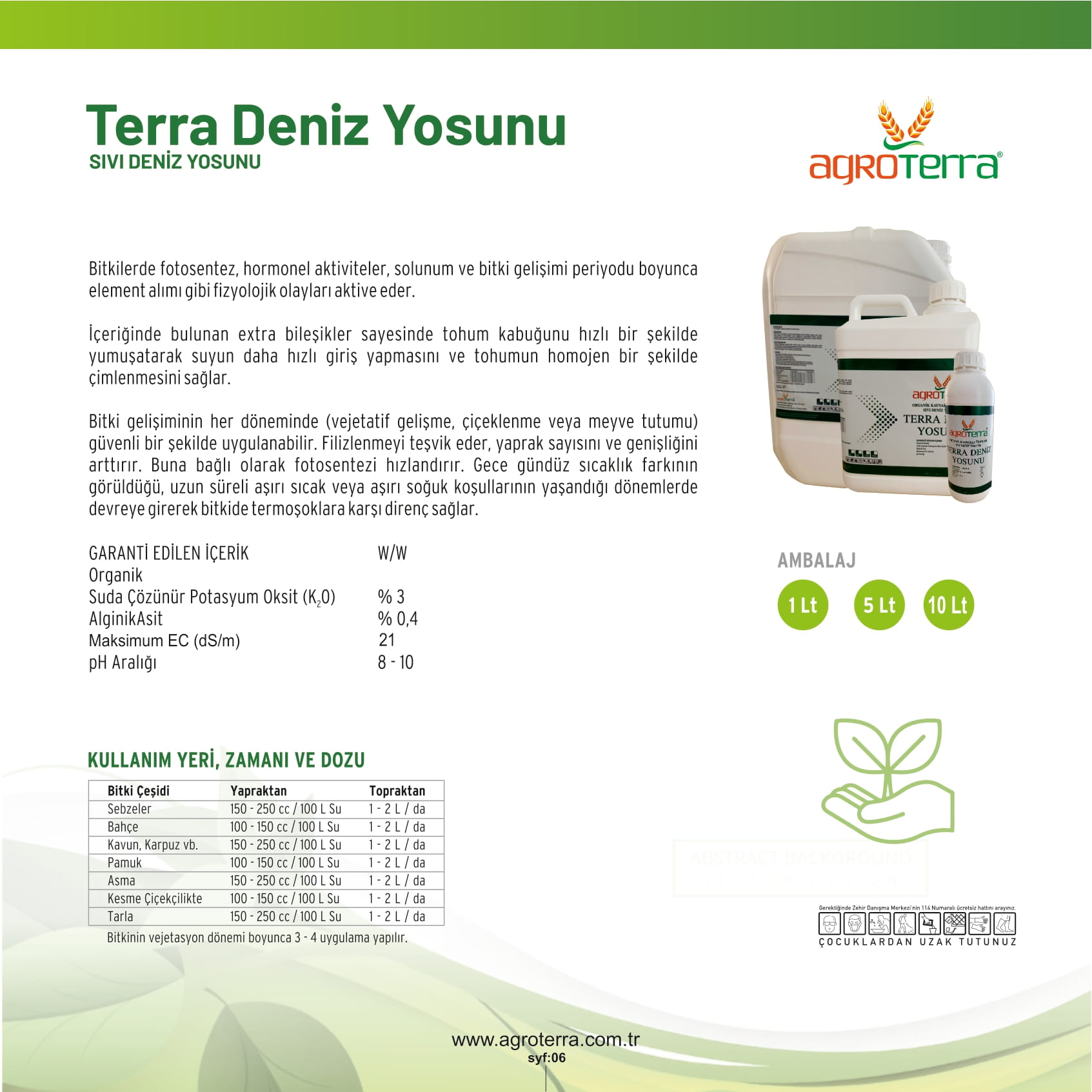 Bitki gelişiminin her döneminde (vejetatif gelişme, çiçeklenme veya meyve tutumu) güvenli bir şekilde uygulanabilir. Filizlenmeyi teşvik eder, yaprak sayısını ve genişliğini arttırır. Buna bağlı olarak fotosentezi hızlandırır. Gece gündüz sıcaklık farkının görüldüğü, uzun süreli aşırı sıcak veya aşırı soğuk koşullarının yaşandığı dönemlerde devreye girerek bitkide termoşoklara karşı direnç sağlar.