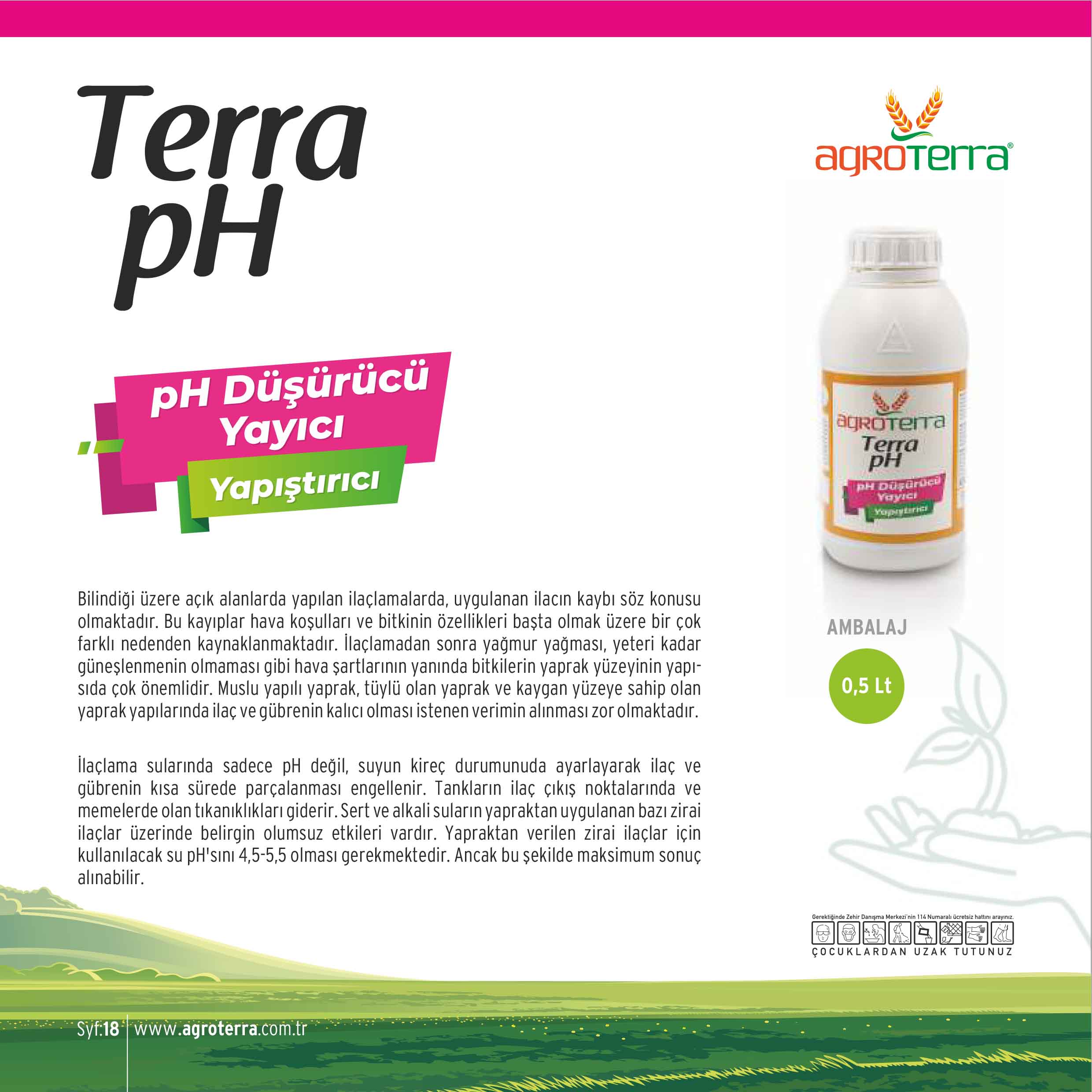 İlaçlama sularında sadece pH değil, suyun kireç durumunuda ayarlayarak ilaç ve gübrenin kısa sürede parçalanması engellenir. Tankların ilaç çıkış noktalarında ve memelerde olan tıkanıklıkları giderir. Sert ve alkali suların yapraktan uygulanan bazı zirai ilaçlar üzerinde belirgin olumsuz etkileri vardır. Yapraktan verilen zirai ilaçlar için kullanılacak su pH'sını 4,5-5,5 olması gerekmektedir. Ancak bu şekilde maksimum sonuç alınabilir.
